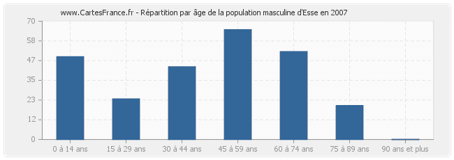 Répartition de la population masculine d'Esse par âge en 2007 :