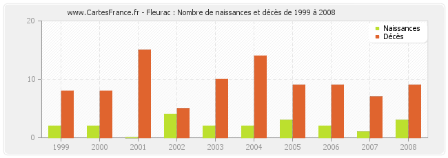 - Fleurac en 2008 : 3 naissances et 9 décès