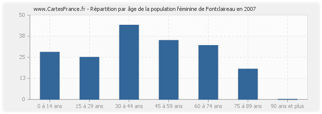 Répartition de la population féminine de Fontclaireau par âge en 2007 :