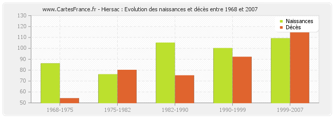 Hiersac : évolution des naissances et décès de 1968 à 2007