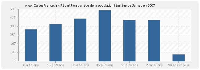 - Femmes de 45 à 59 ans habitant Jarnac : 491
