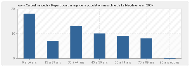 Répartition de la population masculine de La Magdeleine par âge en 2007 :