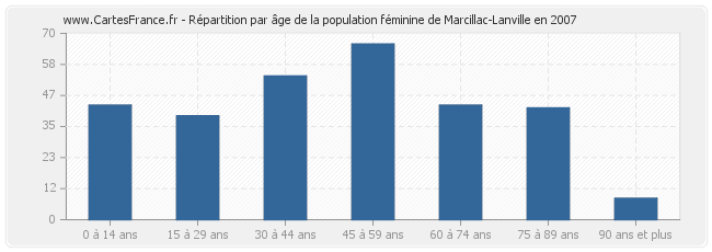 - Femmes de 45 à 59 ans habitant Marcillac-Lanville : 66