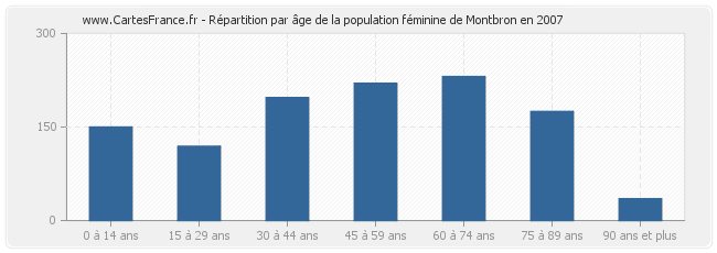 Répartition de la population féminine de Montbron par âge en 2007 :