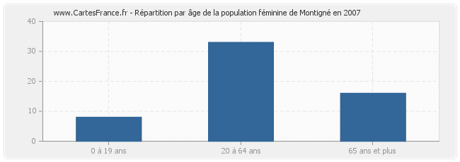 - Femmes de 20 à 64 ans habitant Montigné : 33