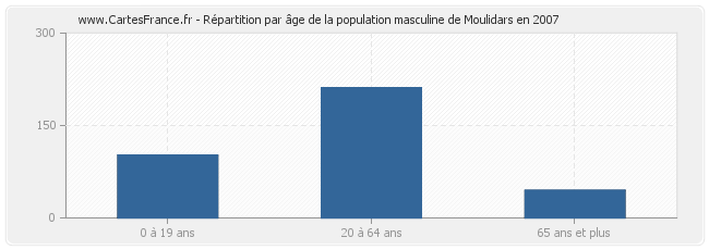 - Hommes de 20 à 64 ans habitant Moulidars : 211