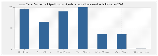 Répartition de la population masculine de Plaizac par âge en 2007 :