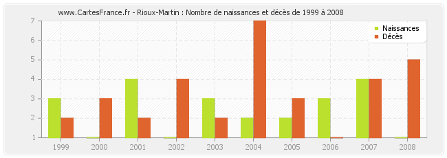 Rioux-Martin : évolution des naissances et décès de 1968 à 2007