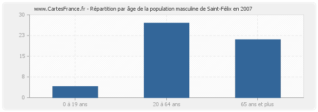 Répartition de la population masculine de Saint-Félix par âge en 2007 :