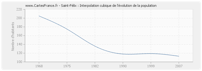 Cette courbe reprend l'historique de la population de Saint-Félix de 1968 à 2007 en interpolation cubique. Ceci permet d'obtenir plus précisément la population de la commune de Saint-Félix les années ou aucun recensement n'a été effectué.