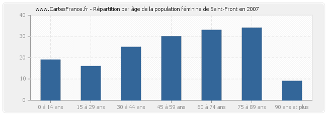 Répartition de la population féminine de Saint-Front par âge en 2007 :