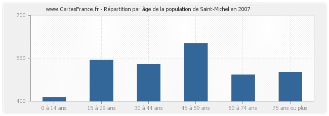 - Population de Saint-Michel de 45 à 59 ans : 602 habitants