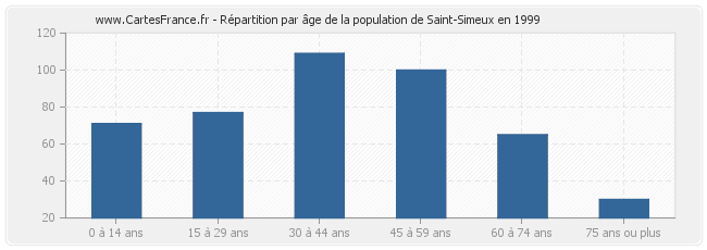 - Population de Saint-Simeux de 30 à 44 ans : 109 habitants