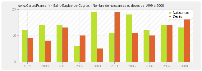 - Saint-Sulpice-de-Cognac en 2008 : 13 naissances et 17 décès