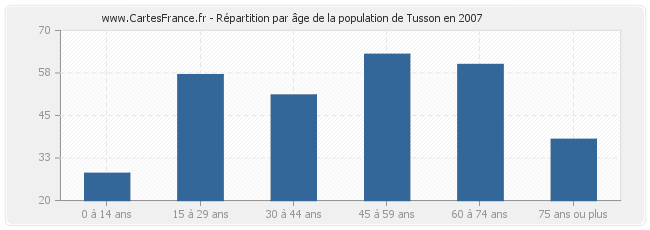 - Population de Tusson de 60 à 74 ans : 60 habitants