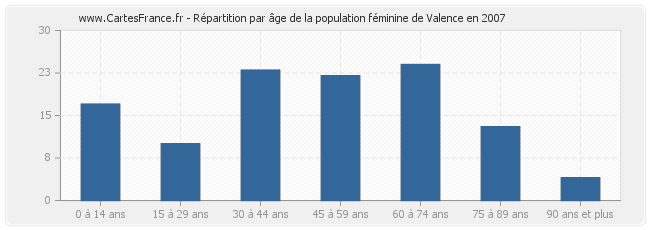 - Population de Valence de 75 ans ou plus : 27 habitants