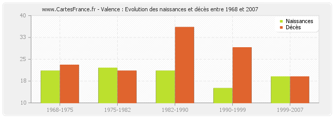 Cette courbe reprend l'historique de la population de Valence de 1968 à 2007 en interpolation cubique. Ceci permet d'obtenir plus précisément la population de la commune de Valence les années ou aucun recensement n'a été effectué.