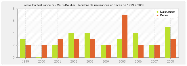 Vaux-Rouillac : naissances et décès de 1999 à 2008
