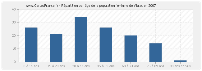 Répartition de la population féminine de Vibrac par âge en 2007 :