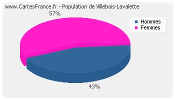 Répartition de la population de Villebois-Lavalette par sexe