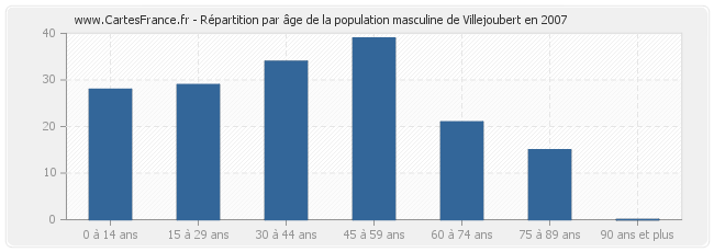 - Hommes de 45 à 59 ans habitant Villejoubert : 39