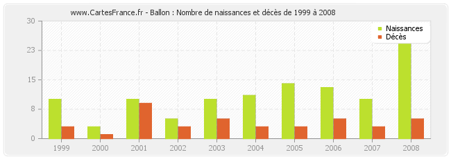 - Ballon en 2008 : 27 naissances et 5 décès