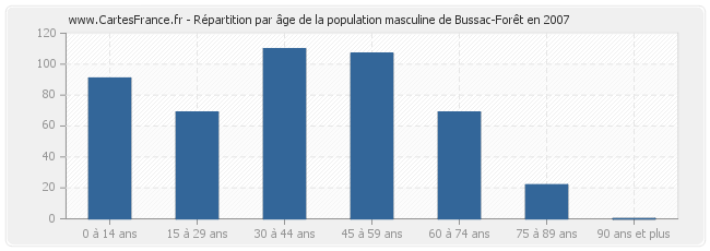 Répartition de la population masculine de Bussac-Forêt par âge en 2007 :