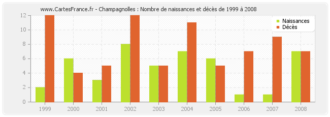 - Champagnolles en 2002 : 8 naissances et 12 décès