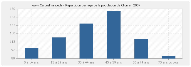 - Population de Clion de 45 à 59 ans : 175 habitants