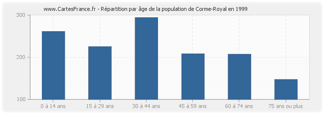 - Population de Corme-Royal de 30 à 44 ans : 294 habitants