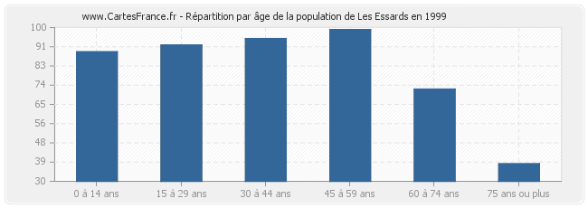 - Population de Les Essards de 45 à 59 ans : 99 habitants