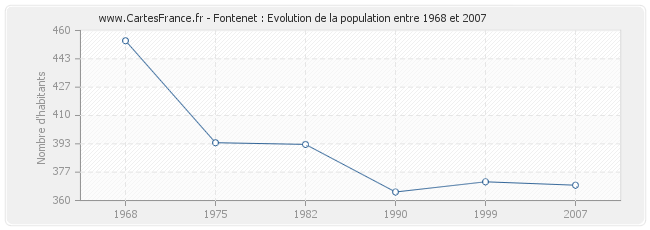 La population de Fontenet était de 369 habitants en 2007, 371 habitants en 1999, 365 habitants en 1990, 393 habitants en 1982, 394 habitants en 1975 et 454 habitants en 1968.