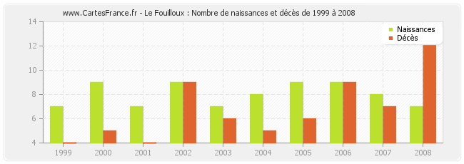 - Le Fouilloux en 2008 : 7 naissances et 13 décès