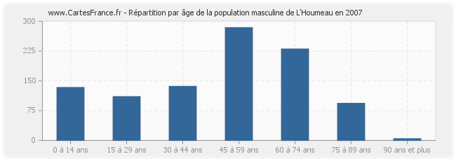 Répartition de la population masculine de L'Houmeau par âge en 2007 :