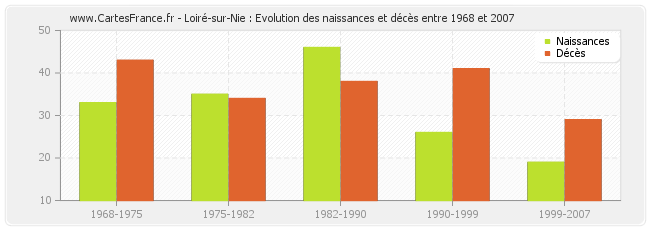 Loiré-sur-Nie : évolution des naissances et décès de 1968 à 2007