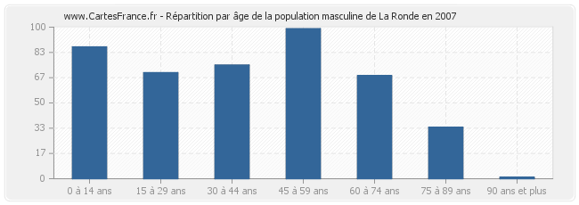Répartition de la population masculine de La Ronde par âge en 2007 :