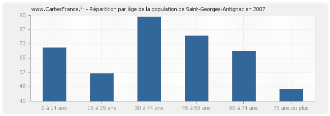 - Population de Saint-Georges-Antignac de 30 à 44 ans : 89 habitants