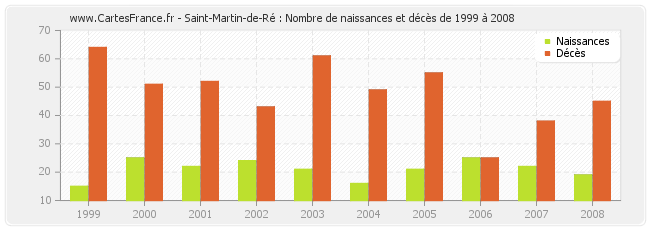 - Saint-Martin-de-Ré en 2008 : 19 naissances et 45 décès