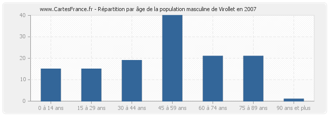 Répartition de la population masculine de Virollet par âge en 2007 :