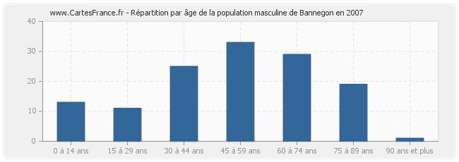 - Hommes de 45 à 59 ans habitant Bannegon : 33