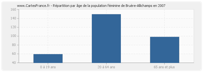 Répartition de la population féminine de Bruère-Allichamps par âge en 2007 :