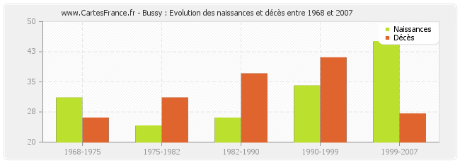 Bussy : évolution des naissances et décès de 1968 à 2007