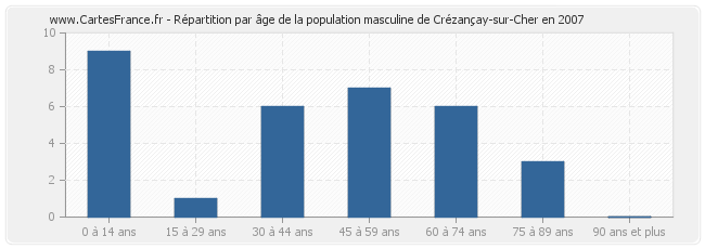 Répartition de la population masculine de Crézançay-sur-Cher par âge en 2007 :
