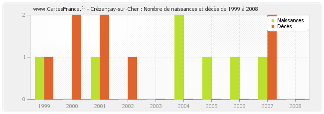 Crézançay-sur-Cher : naissances et décès de 1999 à 2008