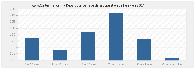 - Population de Herry de 45 à 59 ans : 248 habitants