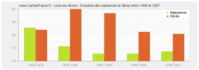 Loye-sur-Arnon : évolution des naissances et décès de 1968 à 2007