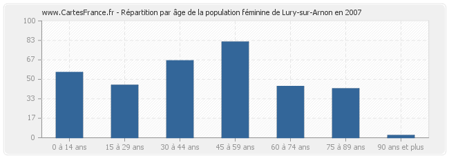 Répartition de la population féminine de Lury-sur-Arnon par âge en 2007 :