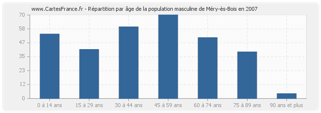 - Hommes de 45 à 59 ans habitant Méry-ès-Bois : 70