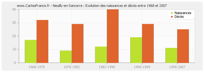 Neuilly-en-Sancerre : évolution des naissances et décès de 1968 à 2007
