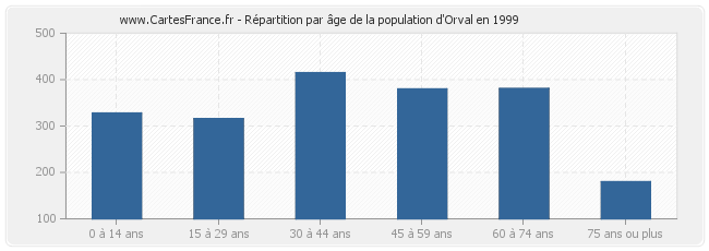 - Population d'Orval de 45 à 59 ans : 411 habitants